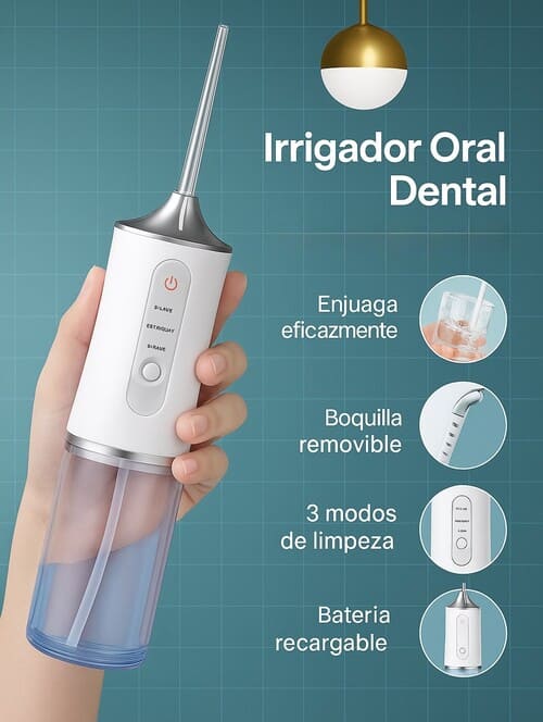 El Irrigador Oral Limpieza Dental Profunda elimina la placa, los residuos y el mal aliento en segundos con el irrigador que cambia tu rutina bucal para siempre.