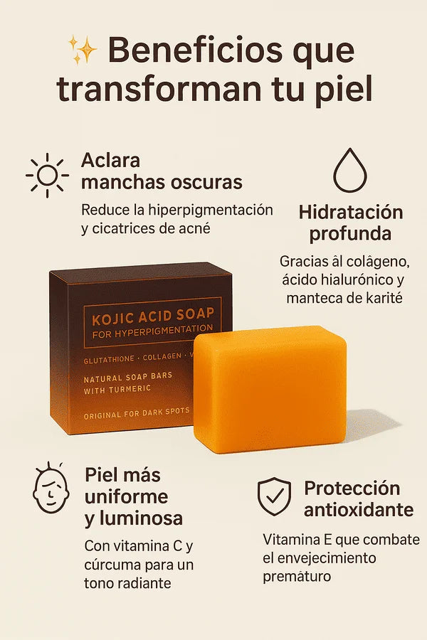 No es solo un jabón, es un tratamiento completo: Aclara manchas, hidrata, unifica el tono y protege tu piel contra el envejecimiento prematuro.