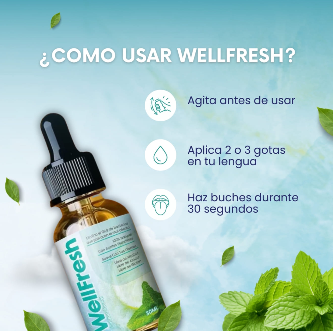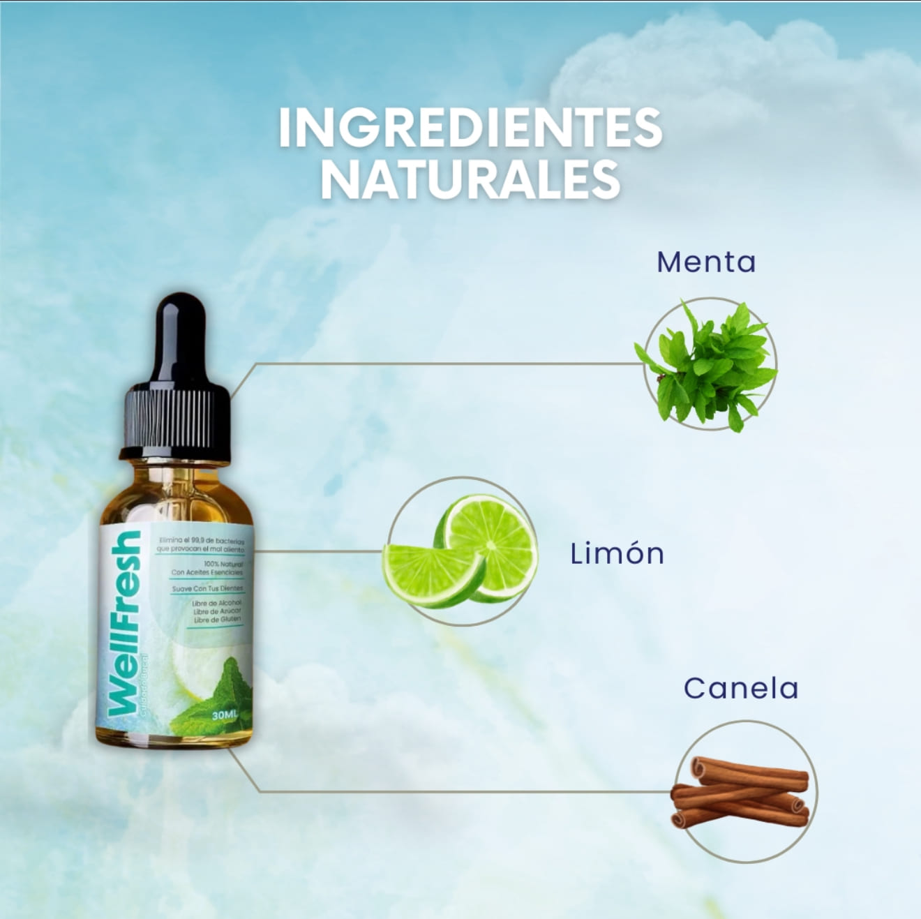 - Ingredientes naturales con extracto de menta.